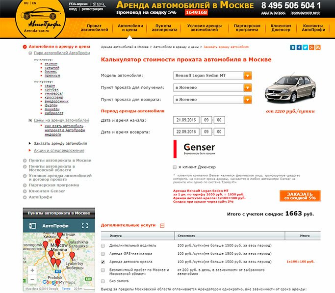 В АрендаАвто-мси предлагается прокат автомобиля недорого.«Рено Логан» на сутки обошелся нам в 1 520 рублей (без учета скидки для клиента Genser), а это очень дешево для авто напрокат в Мысках.